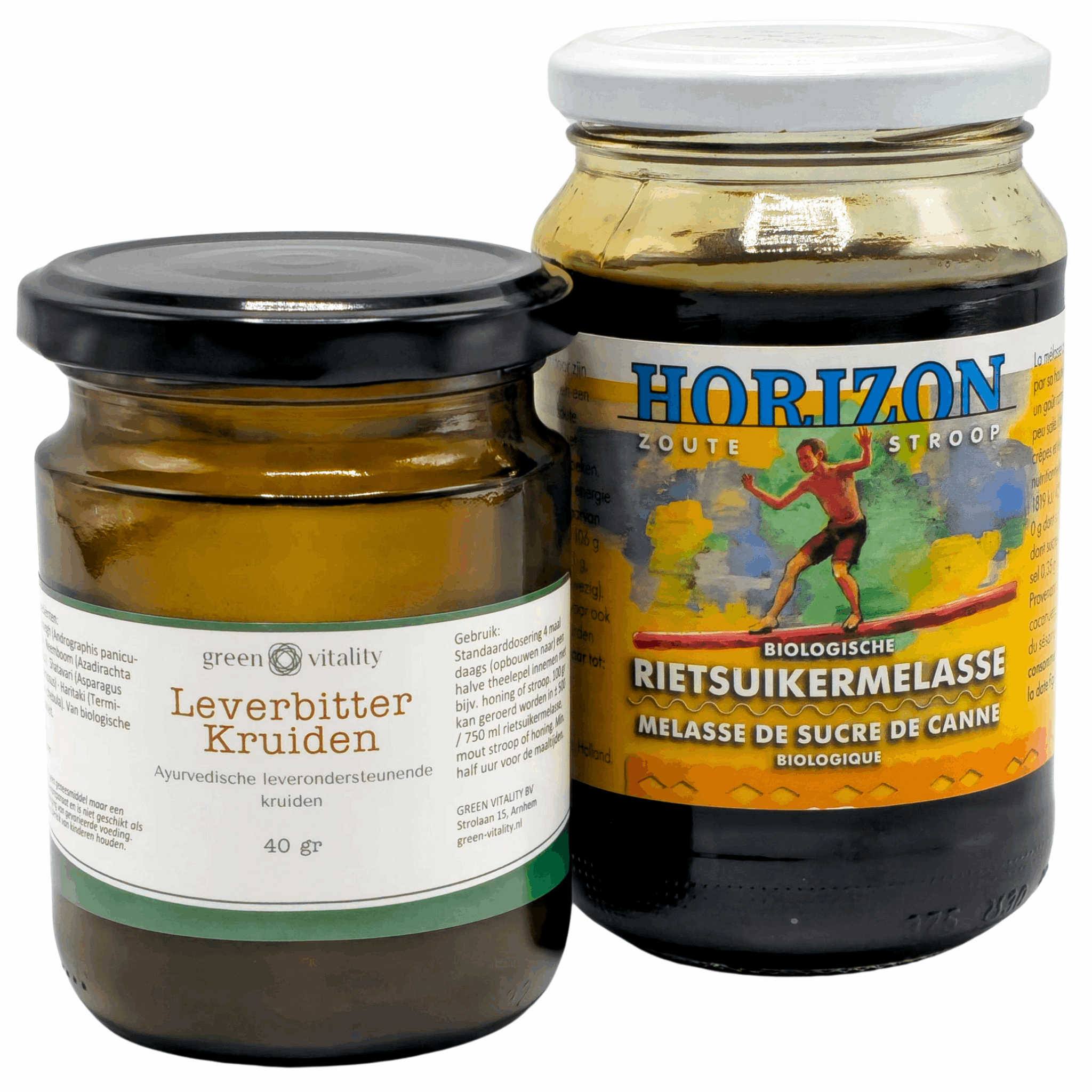 - Gebruiksgemak: Leverbitter kruiden hebben van nature een bittere smaak. Door ze te mengen met rietsuikermelasse ontstaat een gebalanceerd zoet-bitter-zout smaak, waardoor de dosering eenvoudig met een theelepel kan worden ingenomen.